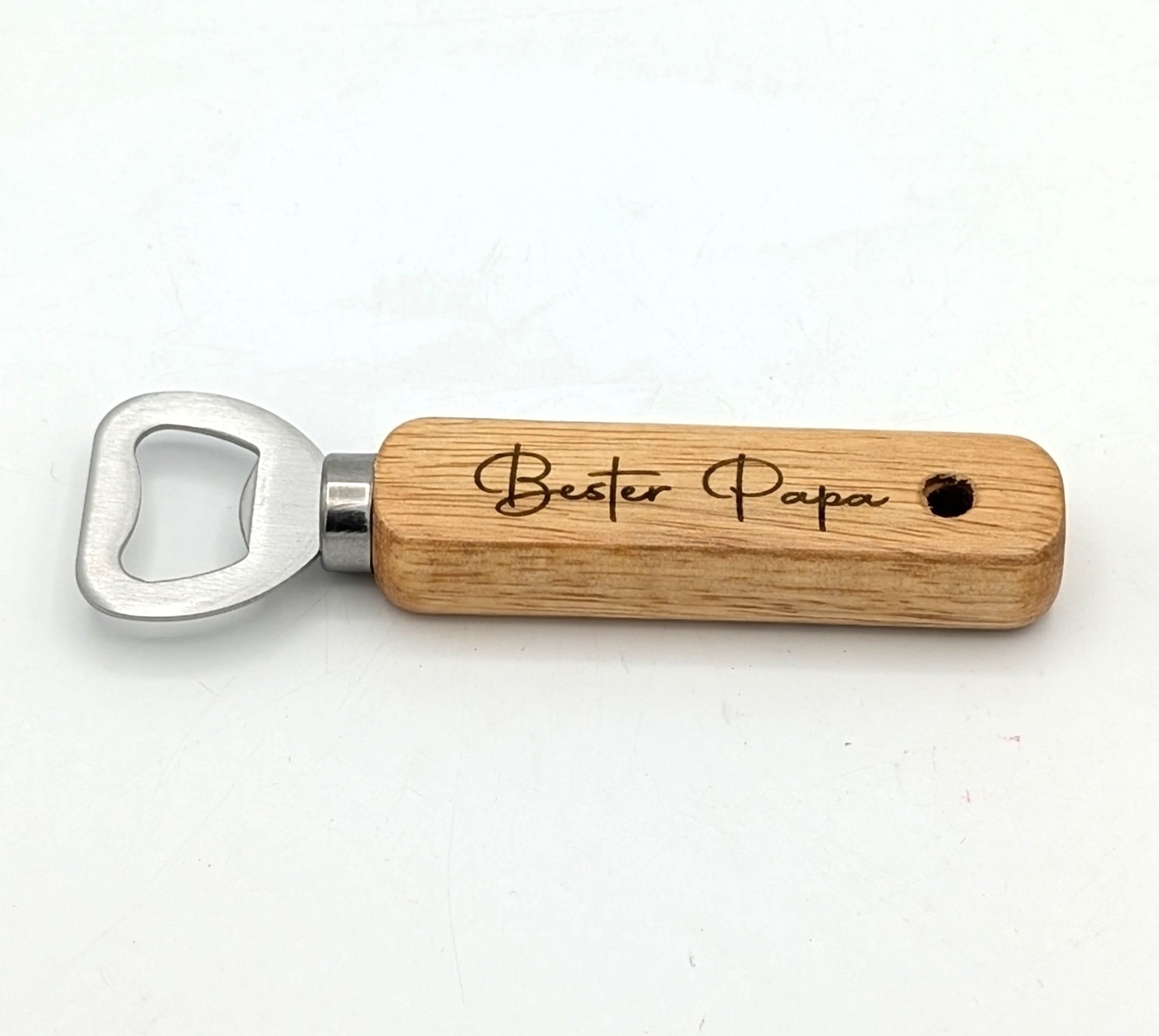 Flaschenöffner aus Buchen-Holz mit Lasergravur "Bester Papa"