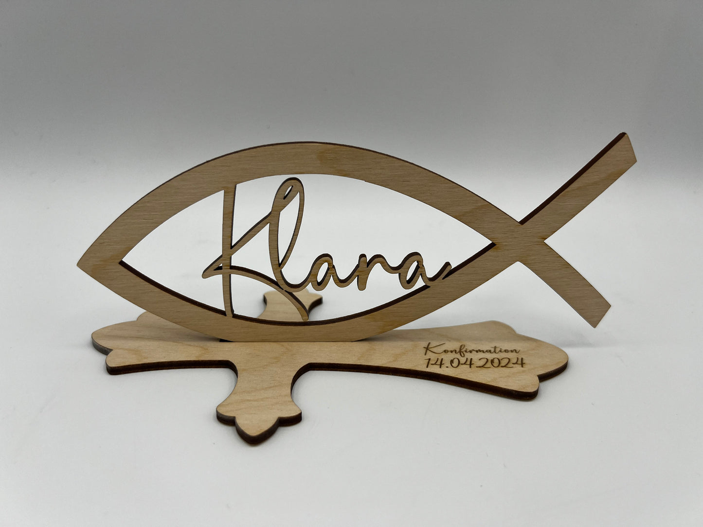 Unsere dekorativen Fische mit Heiligem Kreuz als Fuß sind stilvolle und symbolträchtige Tischdekorationen für Taufe, Konfirmation, Kommunion, Firmung und weitere festliche Anlässe.